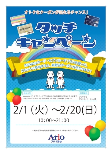 2月のタッチキャンペーンは2/1(火)~20(日)までとロング!タッチキャンペーンとして開催! nanacoカード・…