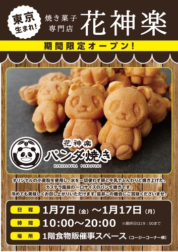 大人気!かわいいパンダ焼きが期間限定オープン! 花神楽 パンダ焼きは、オリジナルの小麦粉を使用し、水を一切使わず卵…