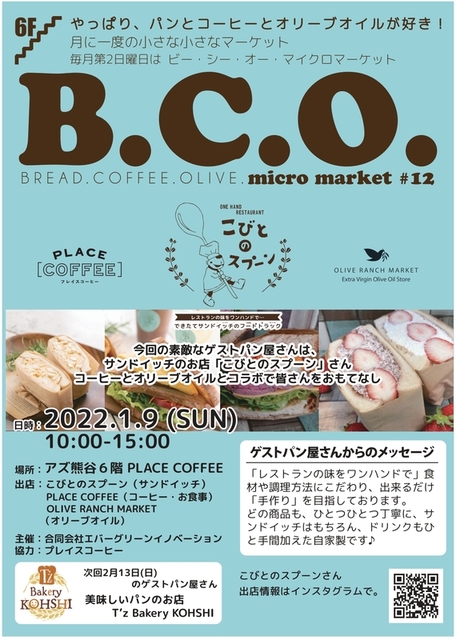 B.C.O.micro-market #12《 こびとのスプーン 》 パンとコーヒーとオリーブオイルの小さくも魅力的…