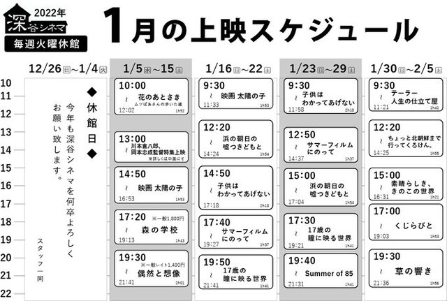 2022年01月01日(土) ~ 2022年01月31日(月)