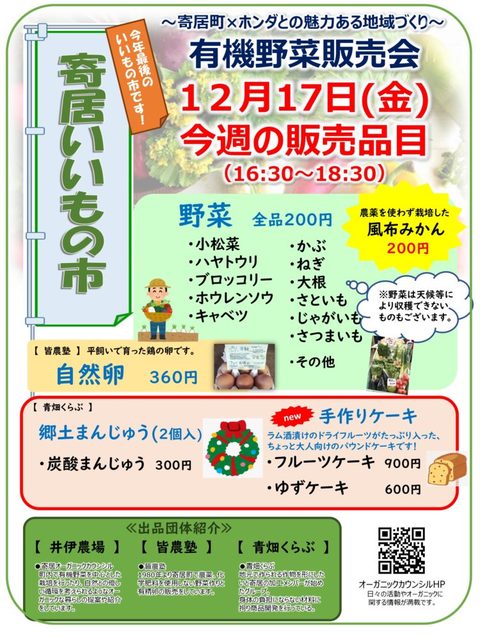 今年最後の「寄居いいもの市」となります!! 12月17日(金)東武東上線みなみ寄居駅構内にて16時30分~18時30分…