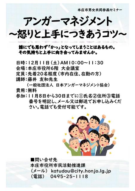 男女共同参画セミナー「アンガーマネジメント~怒りと上手につきあうコツ~」