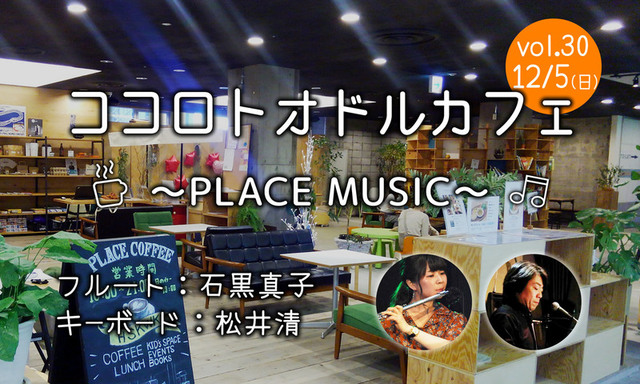 ココロトオドルカフェ – PLACE MUSIC – vol.30 12月のココオドはフルートとキーボードで、クリス…