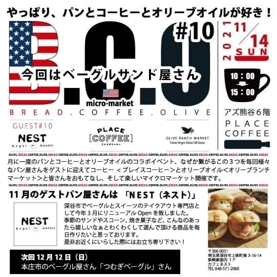B.C.O.micro-market #10《 NEST 》 パンとコーヒーとオリーブオイルの小さくも魅力的なマーケ…
