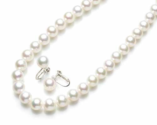 アクセサリーバーゲン ◯アコヤパールネックレス、イヤリングセット 【鑑別書付】N:8.0~8.5mm珠、42cm、S…