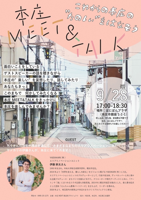面白いことをしているゲストスピーカーの話を聴きながら、 本庄の『楽しい』を妄想したり、話してみたり あなたもきっとこの…