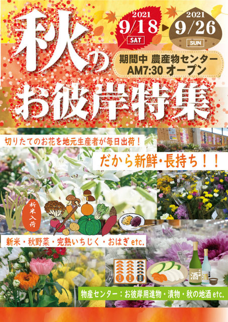 道の駅おかべ 秋のお彼岸特集! 新鮮な切り花をはじめとする、新米・秋野菜・いちじくなどが入荷します!