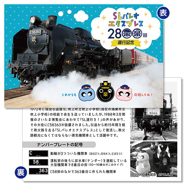 SLパレオエクスプレス2800回運行を記念して、記念入場券を販売します。当券デザインには、四季折々のSLパレオエクスプ…