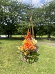 ハンギングタイプのしずく型容器を使い、多肉植物の造花とプリザーブドフラワーを合わせた作品を制作します。 定員:先着1…