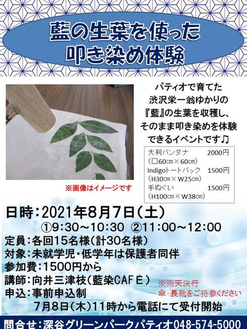 渋沢栄一翁ゆかり!パティオ産の藍の生葉を使った叩き染め体験を開催します!