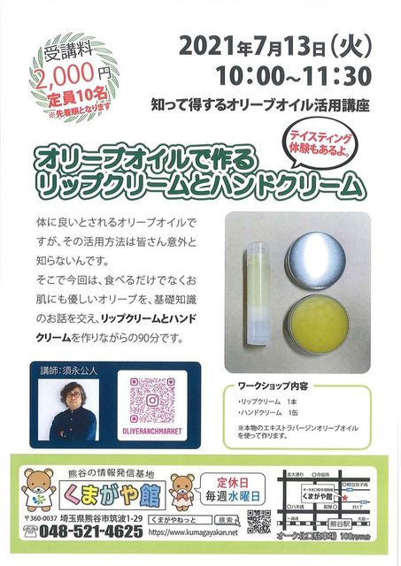 オリーブオイルソムリエ須永さんによる、オリーブオイルの基礎知識とその活用法のお話を伺いながら、オリーブオイルでリップク…