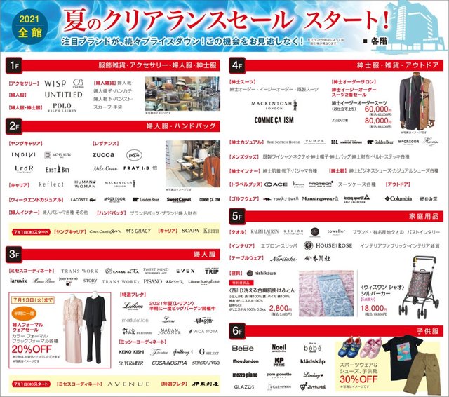 2021 全館 夏のクリアランスセール スタート! 注目ブランドが、続々プライスダウン!この機会をお見逃しなく! …
