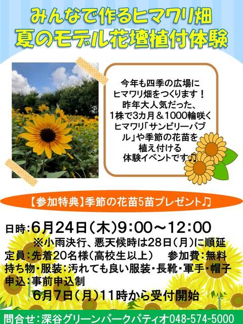 今年も四季の広場に、ヒマワリ畑が登場します! その植付体験イベントを開催しますので、ご希望の方はぜひご参加ください!