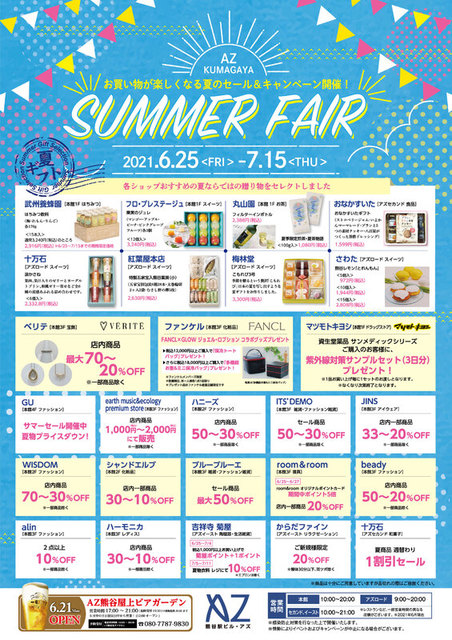 サマーフェア開催中! 只今、アズ熊谷では6月25日(金)~7月15日(木)の期間サマーフェアを開催しております! 是…