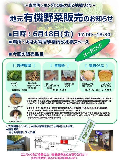 みなみ寄居駅「寄居いいもの市」オープン! ~寄居オーガニックカウンシル~地元有機野菜販売
