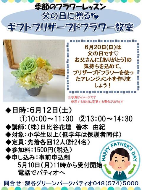 6月20日は父の日です。 お父さんに「ありがとう」の気持ちを込めてブリザーブドフラワーを使ったアレンジメントを作りまし…