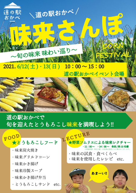 【内容】 道の駅おかべで旬を迎えたとうもろこし味来を満喫しよう‼ ■とうもろこしフード とうもろこし味来を様々な調…
