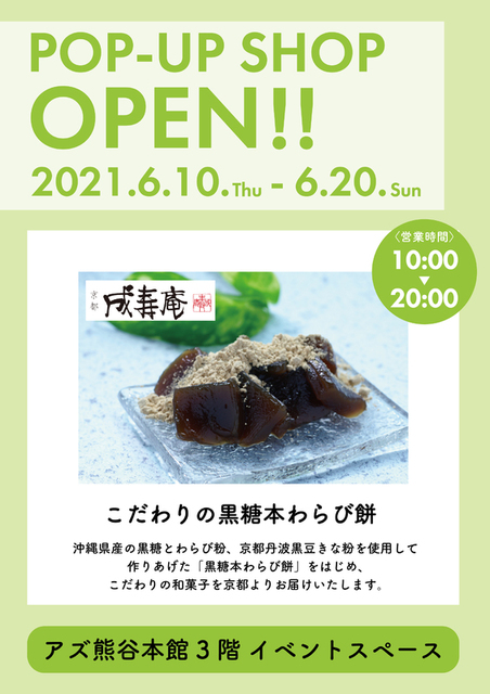 こだわりの黒糖本わらび餅「京都 成寿庵」が期間限定OPEN!