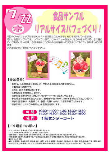 今回のワークショップは皆さんが「一度は見たことがある」ものを制作していきます。 それは食品サンプルです。レストラン等で…