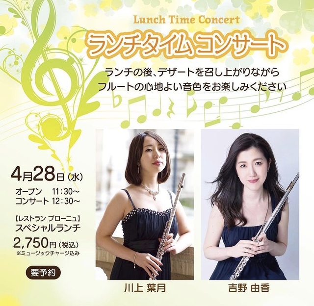フレンチ&イタリアンレストラン「ブローニュ」で ランチの後にデザートを召し上がりながら フルートの心地よい…