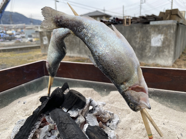 テラスにて、ニジマスの串焼き販売を開催致します! 昔懐かしの長火鉢を使い、炭火でじっくりと焼きあげる旨みたっぷりのニジ…