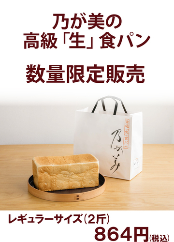 【2/18(木)より】乃が美 高級「生食パン」期間限定販売!!