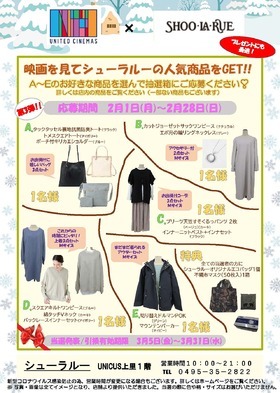 第3弾!シネマ×シューラルー コラボ企画 映画を観て素敵な景品をGET!! 特典 全ての当選者の方にシューラルーオリ…