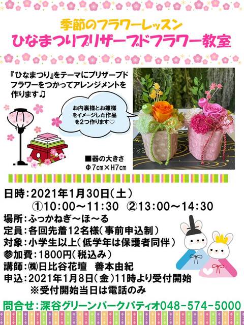 『ひなまつり』をテーマに、プリザーブドフラワーを使ってアレンジメントを作ります! 今回はお内裏様とお雛様をイメージした…