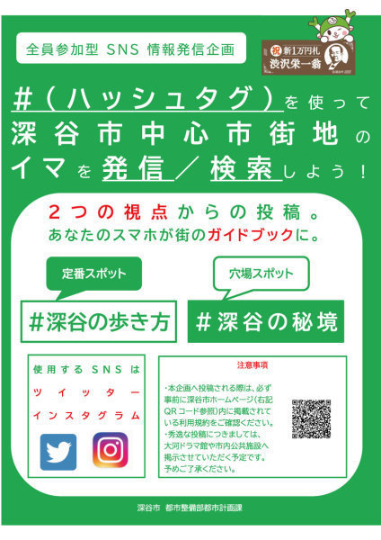 魅力ある中心市街地の定番スポットを発信! 個人アカウントのSNS(ツイッター及びインスタグラム)から、魅力ある深谷市中…