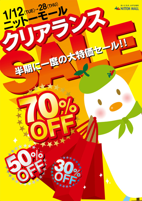 ニットーモール クリアランスSALE 半期に一度の大特価セール!! ■期間:2021年1月12日〜1月28日まで …