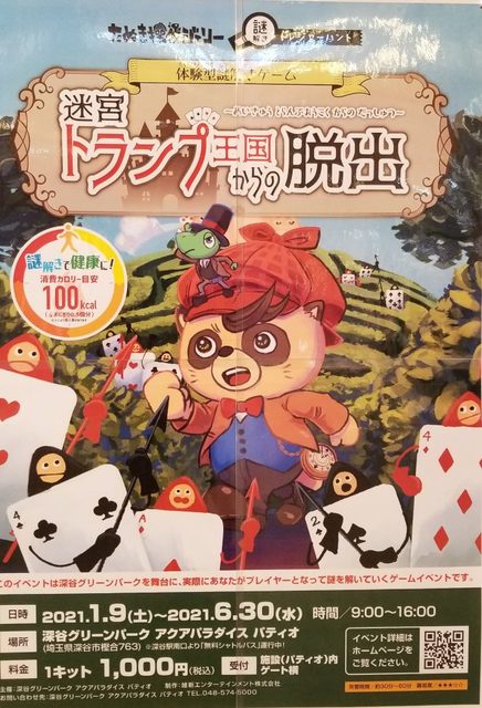 ただ今、パティオにて体験型謎解きゲームを開催中!その名も『迷宮トランプ王国からの脱出』 公園内に設置されている5つの謎…