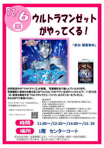 好評放送中の『ウルトラマンZ』が登場。 写真撮影会で楽しんでいただけます。 写真撮影に参加のお客さまには、『You T…