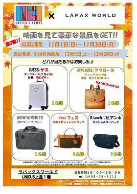 第3弾!シネマ×ラパックスワールドコラボ企画 映画を観て素敵な景品をGET!! 【GUESS/ゲス】 スーツケース…