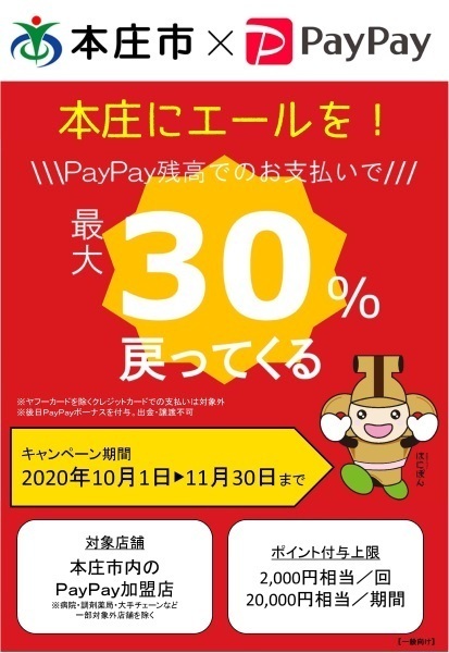 本庄にエールを!対象店舗で最大30%戻ってくるキャンペーン