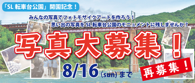 当社では、現在SL転車台公園開園記念として「フォトモザイクアート」用の写真を募集いたします。前回の募集期間(6/18~…