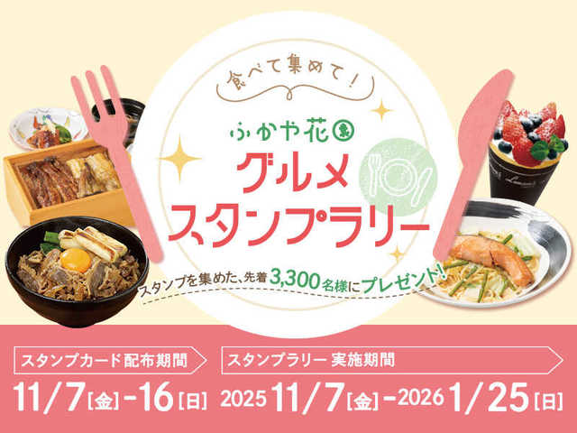 期間中、対象の飲食店舗で¥2,000(税込)以上のご利用でスタンプが1つもらえます♪ スタンプを5つ集めたお客様には、…