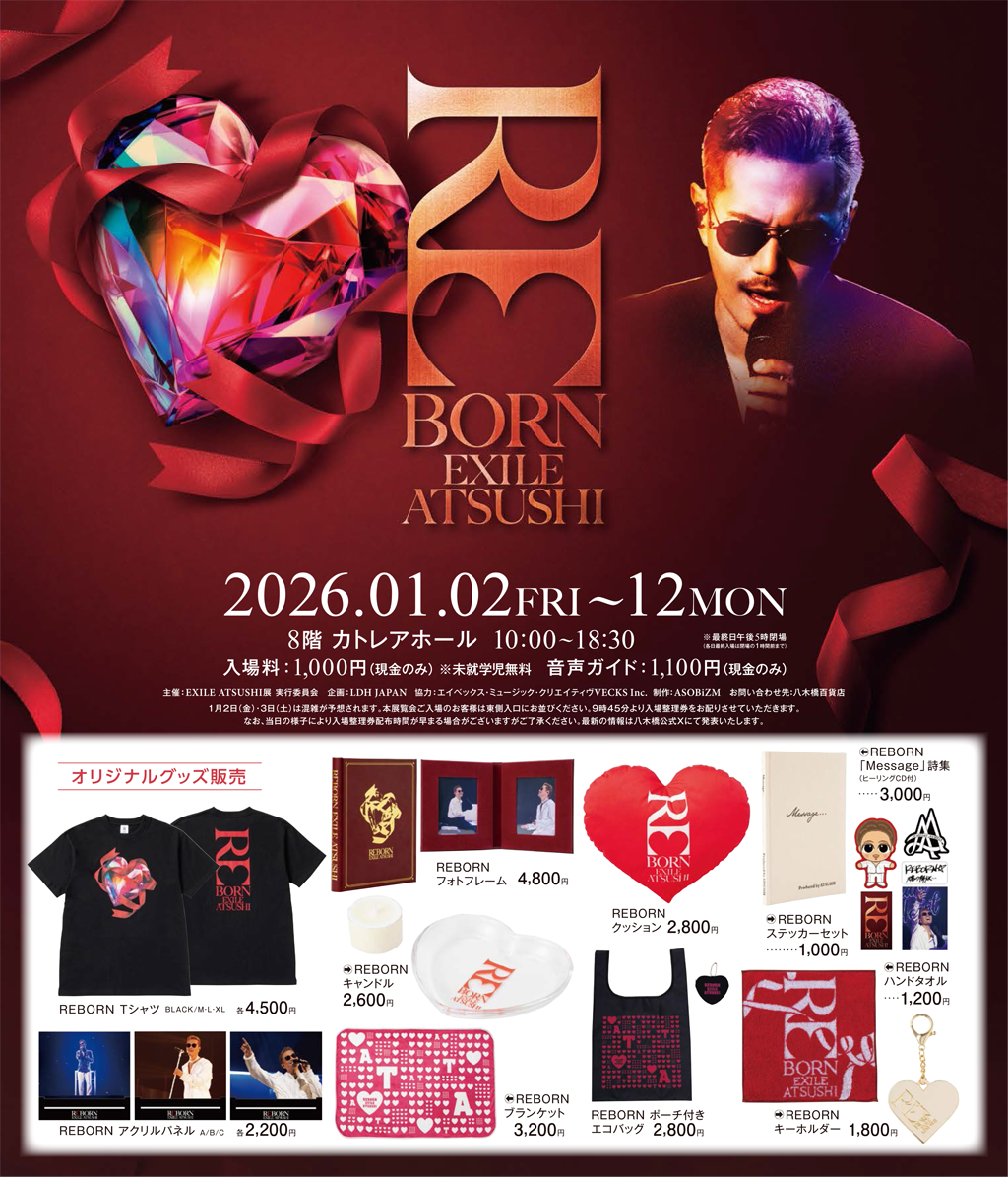 EXILE ATSUSHI展~REBORN~ ■場所:八木橋百貨店 8F カトレアホール ■期間:2026年1月2日…