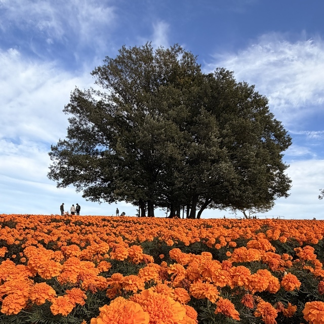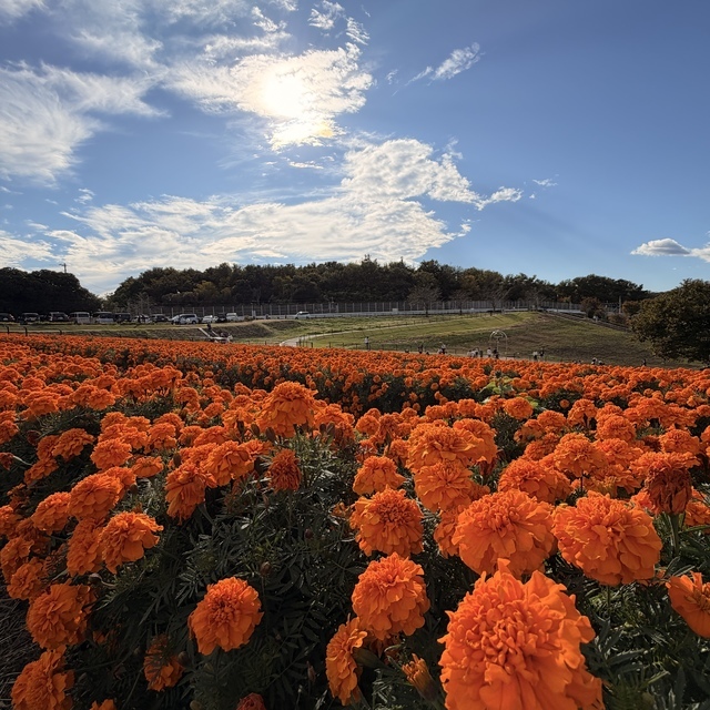 一面に広がるオレンジのマリーゴールドと、澄み渡る青空のコントラストが本当に美しい。 花畑の中、つい鐘を鳴らして楽しんじゃいました。 入場料・駐車場ともに無料で、お散歩にもぴったりな気軽さ。家族や友達とのんびり過ごすのにおすすめです。 (投稿:2025/12/01 掲載:2025/12/01)