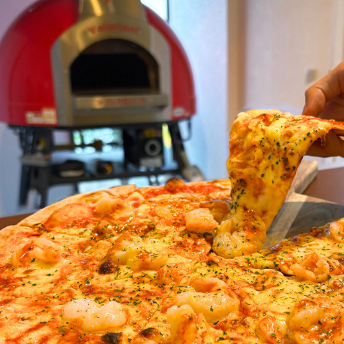 いざ、アツアツのピザを頬張ると…ぷりっぷりの身が口いっぱいに弾け、旨みがじゅわ〜っと広がります。高温短時間で焼いたエビって、こんなに美味しいの!? と叫びたくなるほど。まさにピザ窯マジックです。クセになるぷりぷり食感と、素材本来の味わいがエビ好きにはたまりません。