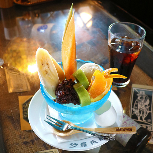 フルーツあんみつと、沙羅英慕自慢の珈琲も一緒にどうぞ。