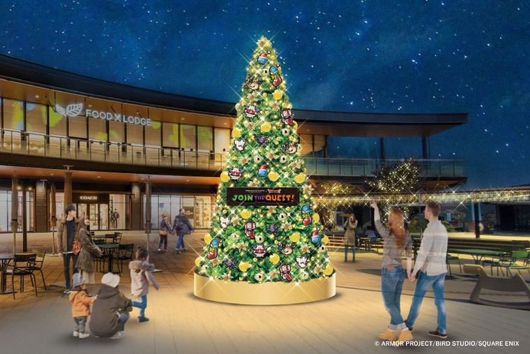 夜にはシャンパンゴールドのイルミネーションに照らされ、さらに賑やかで煌びやかな光の世界に。あたたかな光に包まれ非日常を感じるふかや花園プレミアム・アウトレットで、「ドラゴンクエスト」の装飾と共に、ホリデーシーズンのショッピングをお楽しみください。