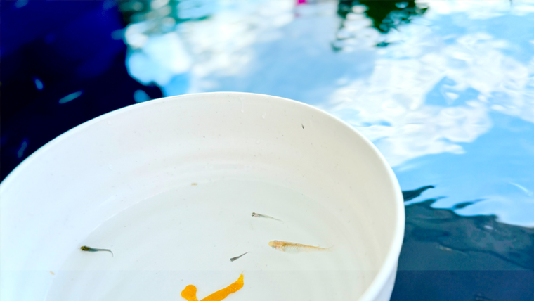 筆者はメダカすくい初挑戦でしたが、お姉さんのレクチャーのおかげで、5匹ほどゲットすることができました!